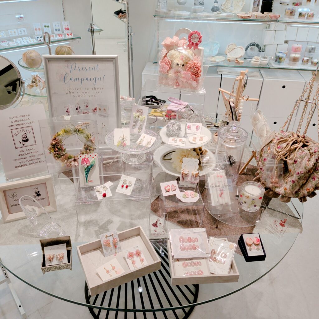 こんにちは!風が強い大阪市内です。 今日は丸テーブルの作品たちがかわったよーの報告。 こちら⬇️ 白とゴールドがメインです。 とっても美しいですよー✨ お店に入ってすぐの丸テーブルでぜひ作品たちを見てくださいね😊 ∗゚⋆。... -